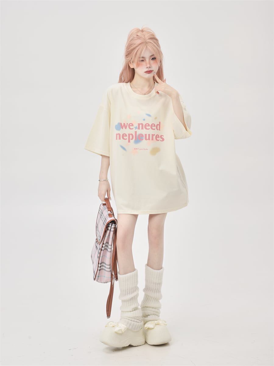ポップロゴオーバーサイズTシャツは、カラフルでポップなメッセージプリントが目を引くアイテム。