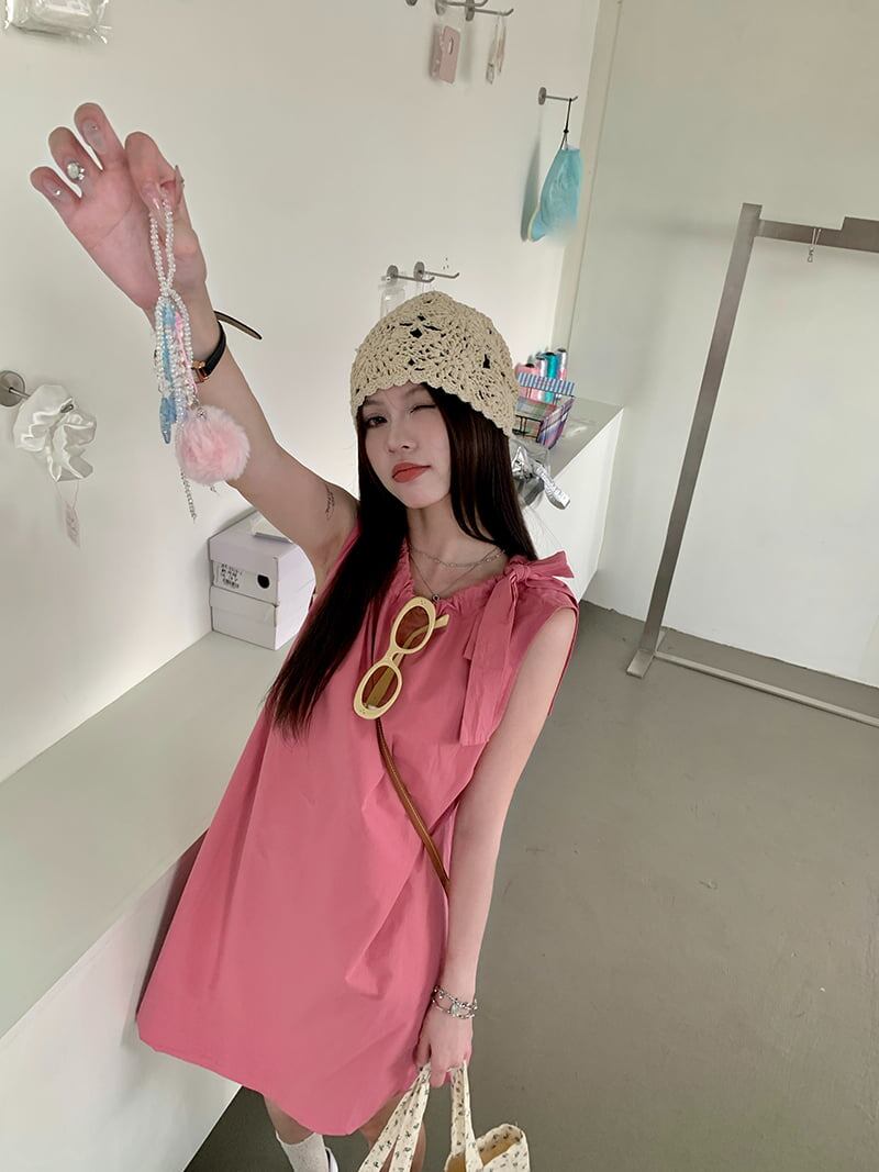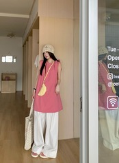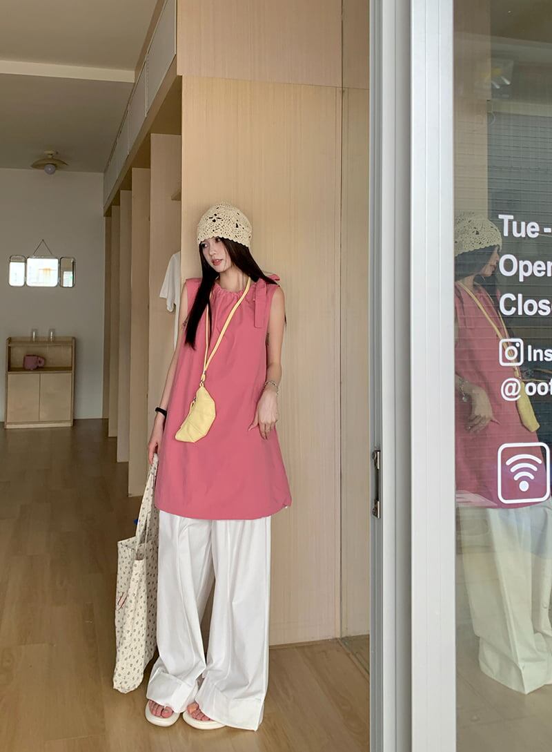 ノースリーブのデザインと軽やかな素材が、夏のコーディネートにぴったり。