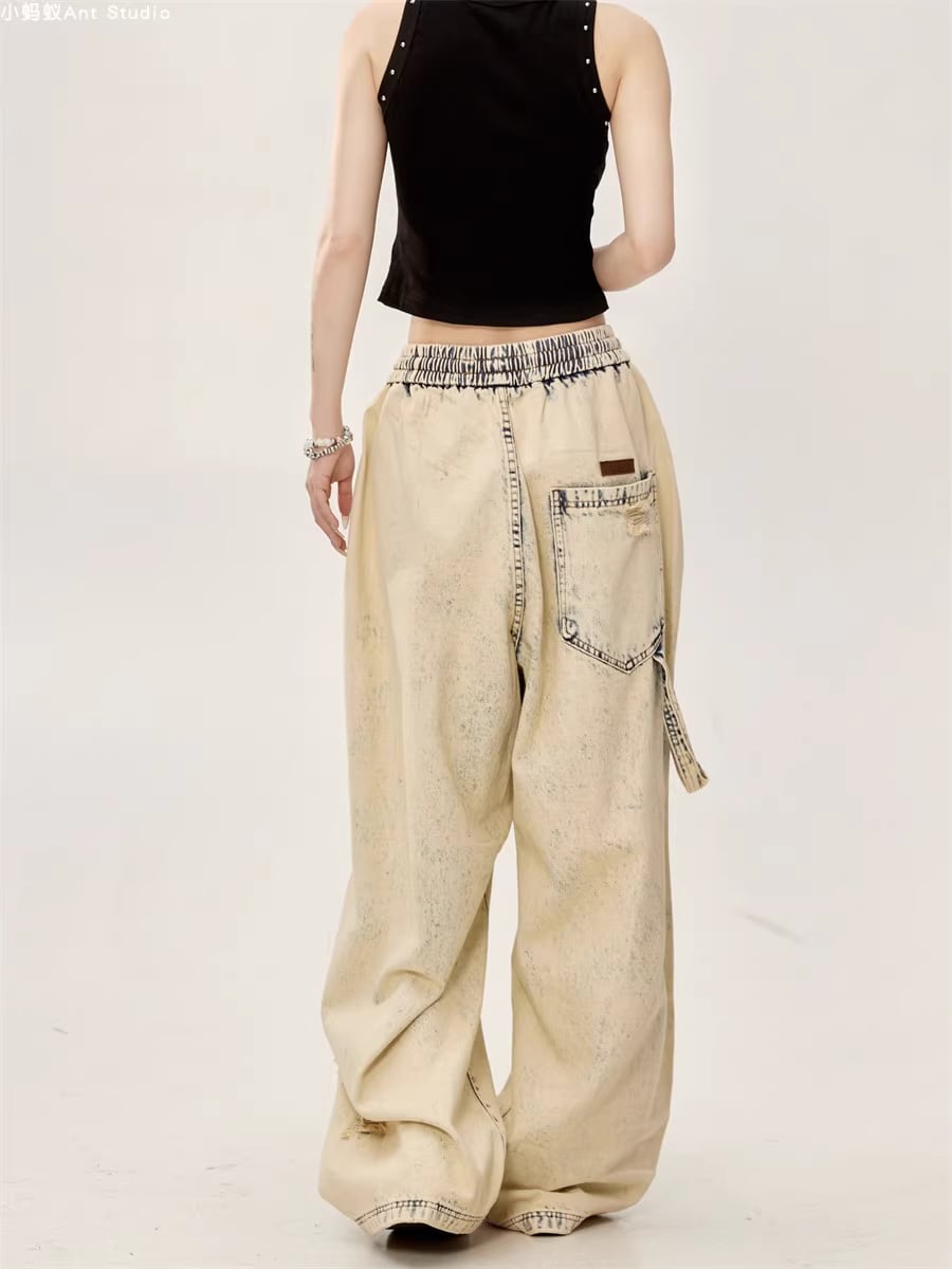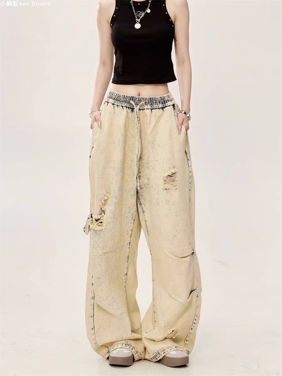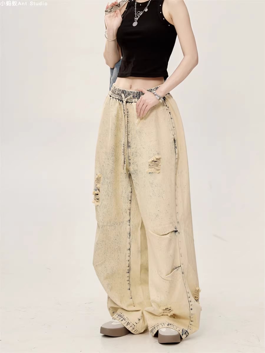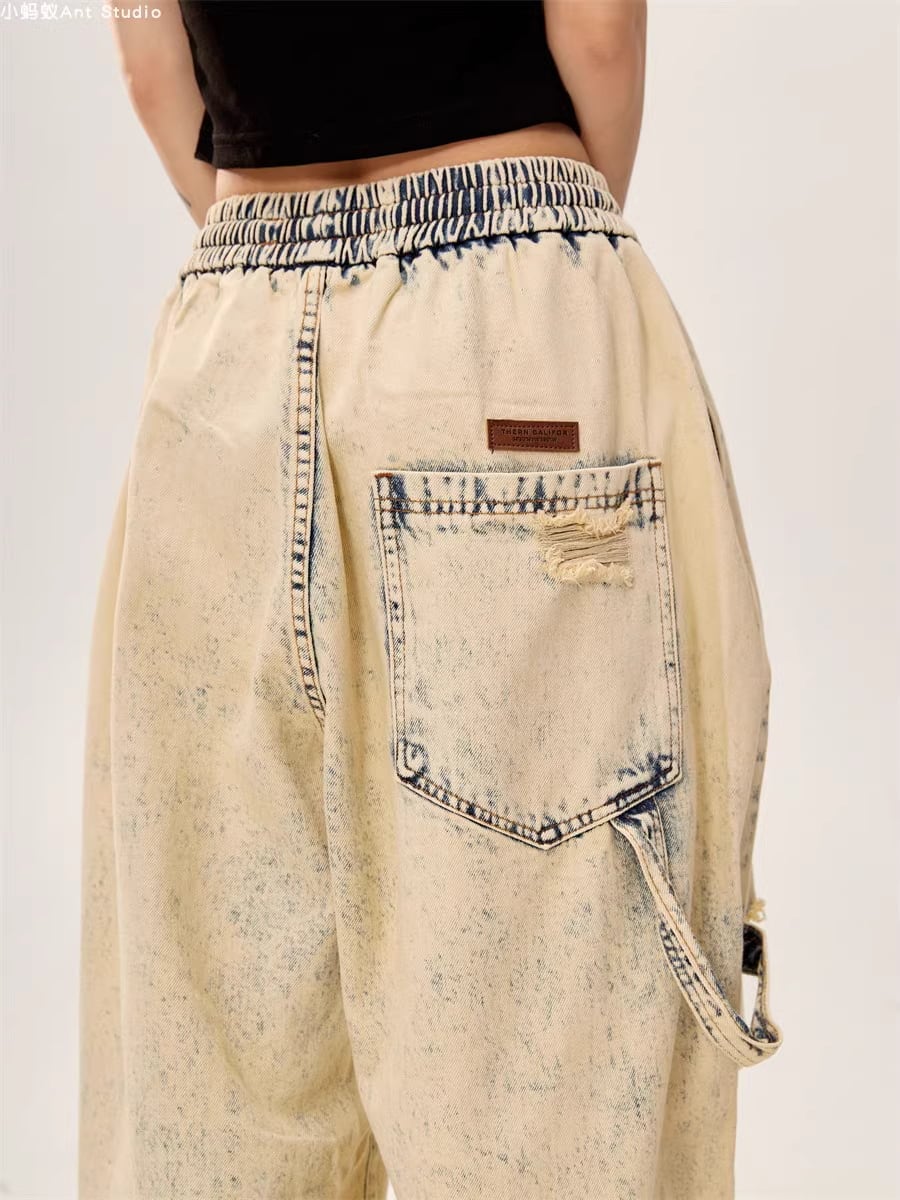 ユニークなアシッドウォッシュ加工と大胆なダメージディテールが特徴。